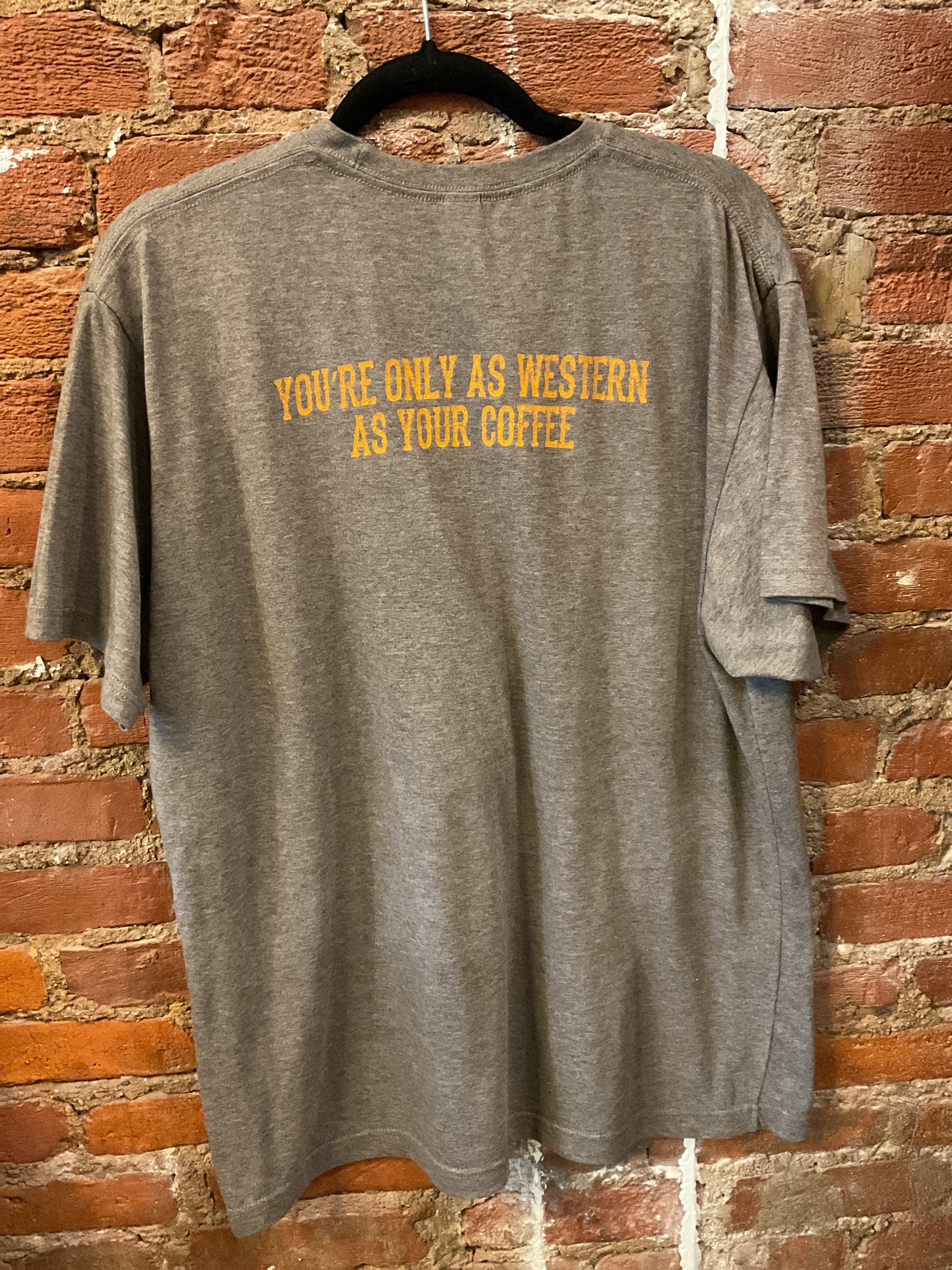 Saddle up with this heather brown short-sleeve tee featuring the Bison Union Rodeo from Sheridan, Wyoming. It's a tribute to authentic Western heritage and the spirit of the frontier, perfect for rodeo fans and anyone who loves genuine Americana. The warm, earthy tone makes it easy to style with your everyday wardrobe while the graphic adds instant character. A shirt that celebrates tradition with a modern, laid-back edge. Size XL.