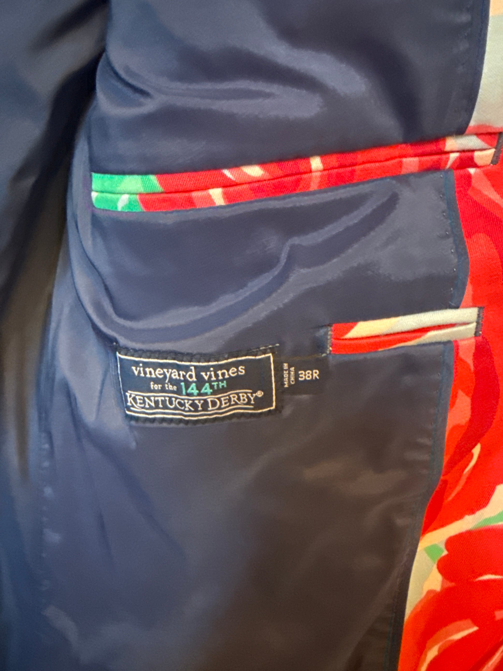 Make a statement with this Run for the Roses Vineyard Vines Blazer, a celebration of Derby 144 style and Southern charm. Rendered in light blue with a vibrant hot pink rose painted print, this blazer transforms any outfit into something memorable. Professionally dry cleaned and in like-new condition, it's ready to elevate your wardrobe immediately. Perfect for Derby Day festivities, special occasions, or anyone bold enough to embrace floral flair with preppy polish. This is the blazer that starts conversations. Size 38R.